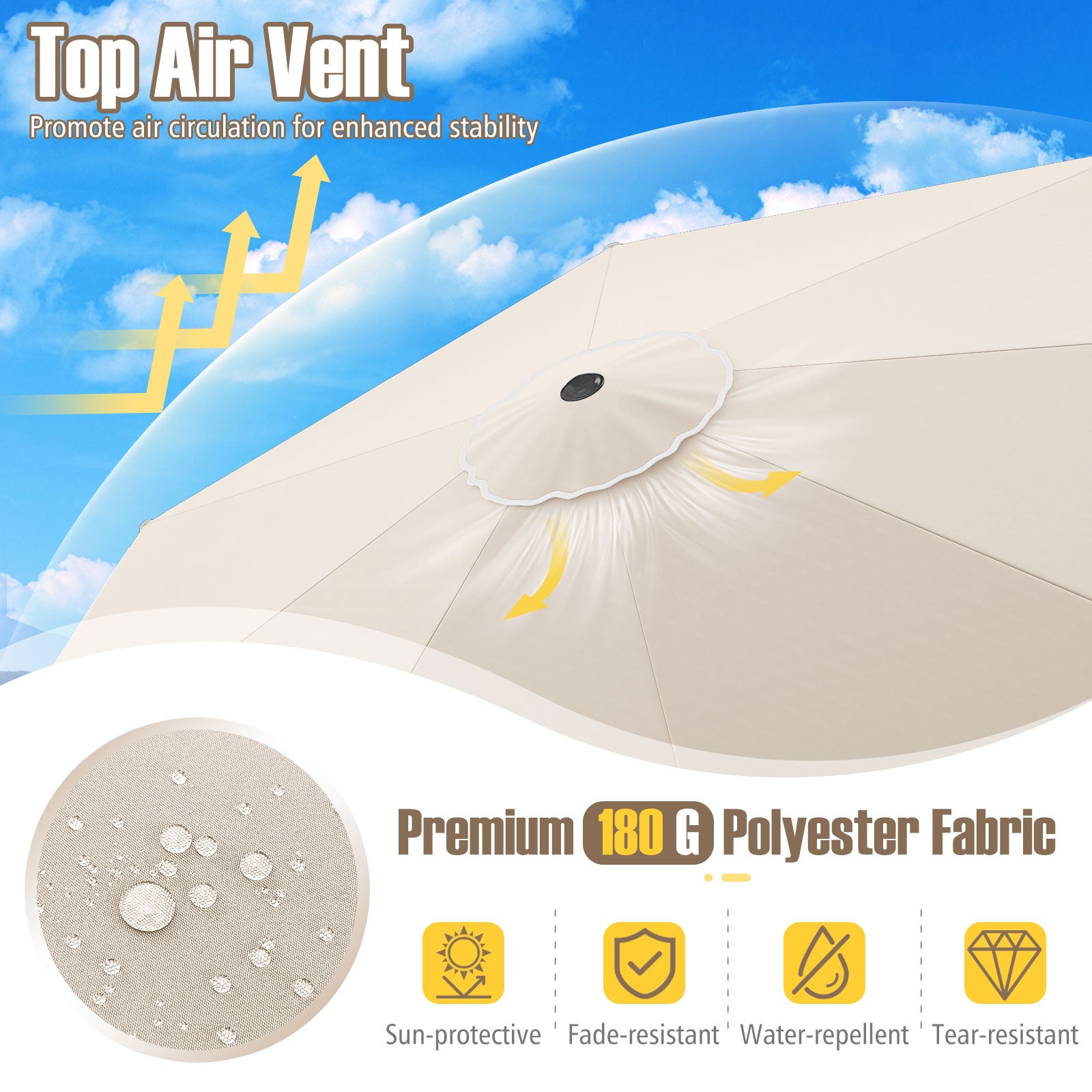 10 Feet Patio Umbrella Outdoor Market Umbrella with Crank Tilt Adjustment-Beige