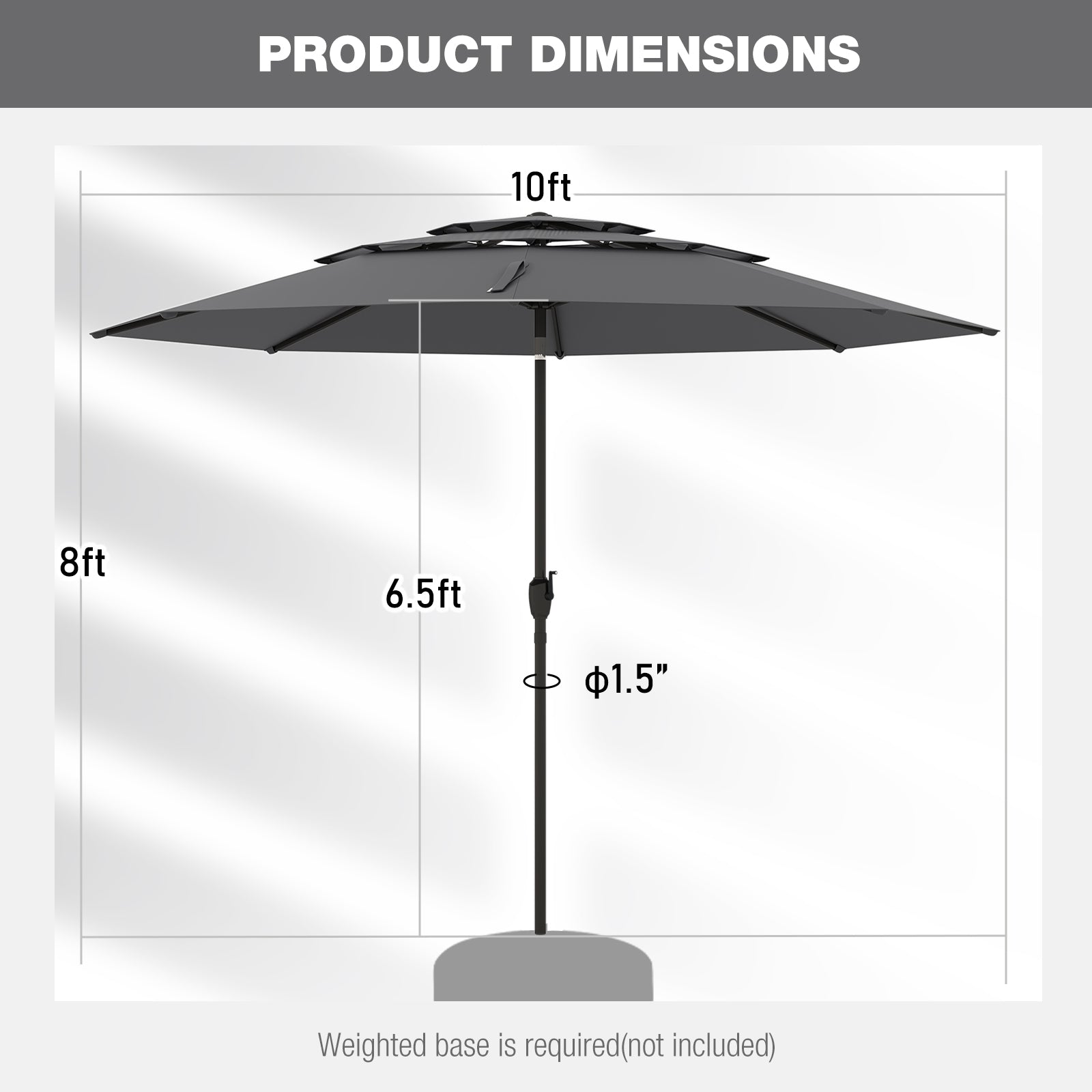 10 ft 3-tier Vented Patio Umbrella with Push Button Tilt-Gray