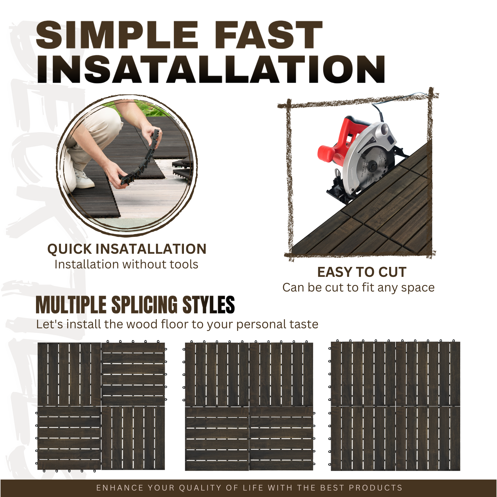 Waterproof & Anti Mildew and Mold: Wood Deck Tiles were sanded with 240-grit sanding paper and then finished with water-based oil, which helps them Waterproof & Anti Mildew and Mold