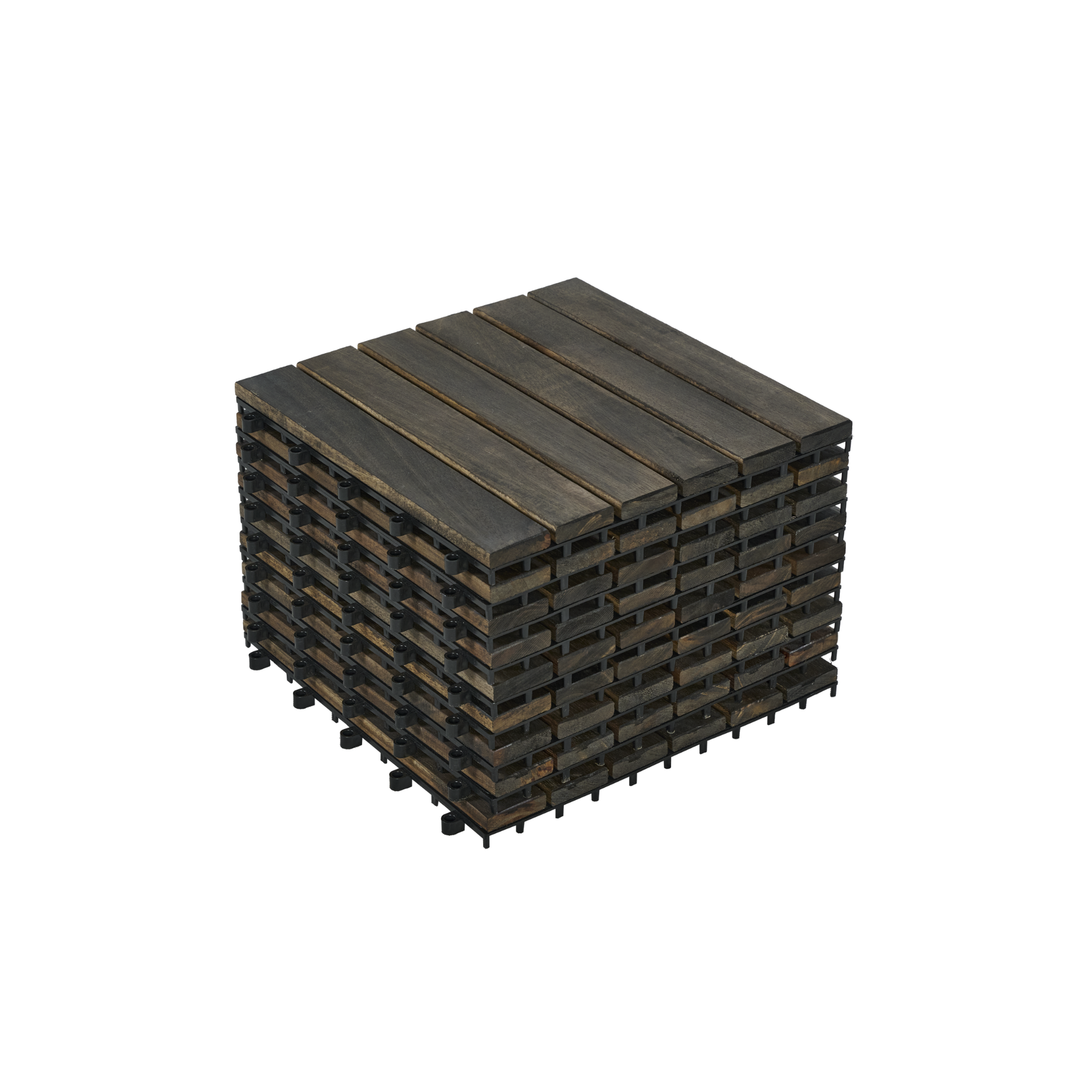 10 PCS Interlocking Deck Tiles Striped Pattern, 12" x 12" Dark Brown Square Acacia Hardwood Outdoor Flooring for Patio, Bancony, Pool Side