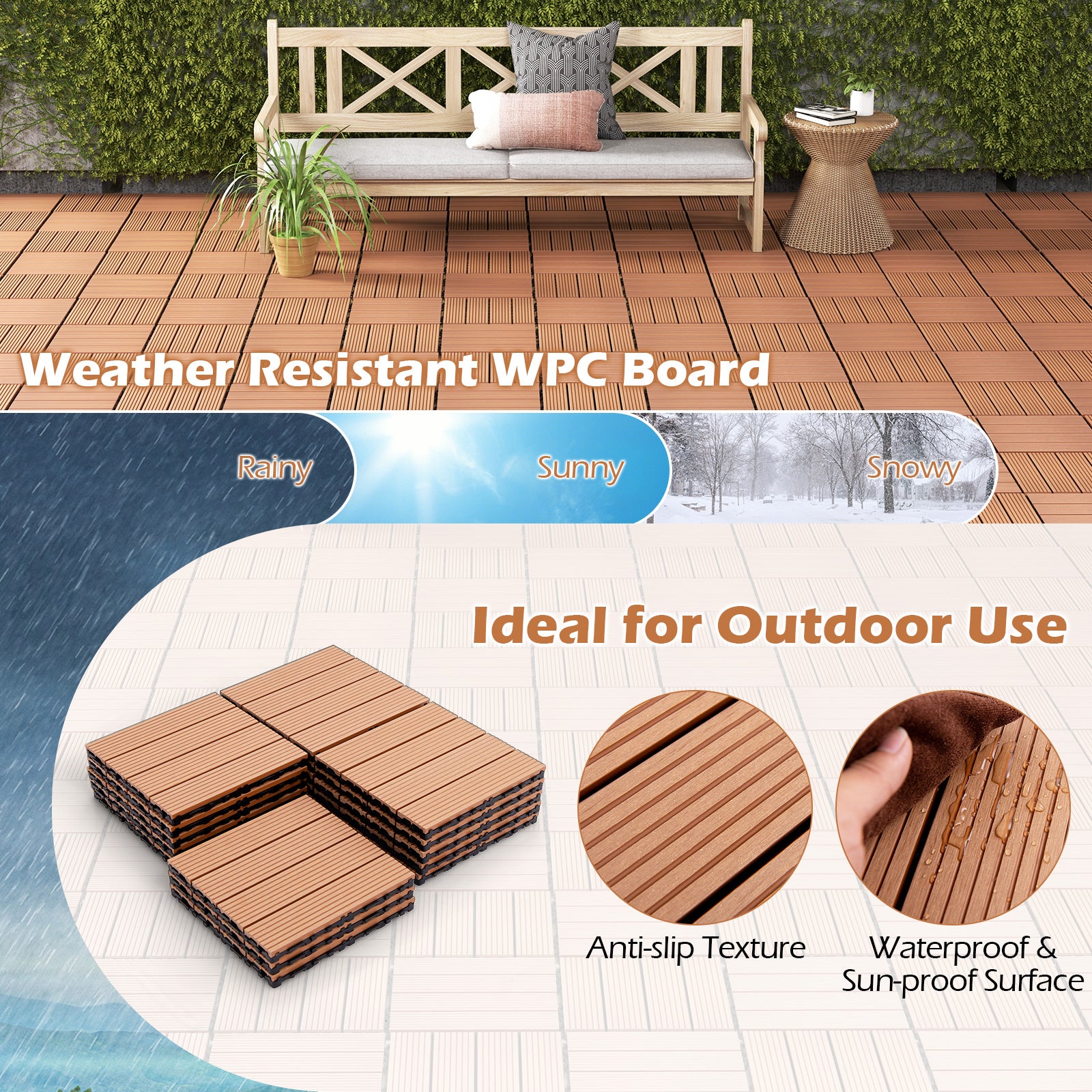12 x 12 Inch 18 Piece All Weather Interlocking Deck Tiles for Splicing Area-Brown