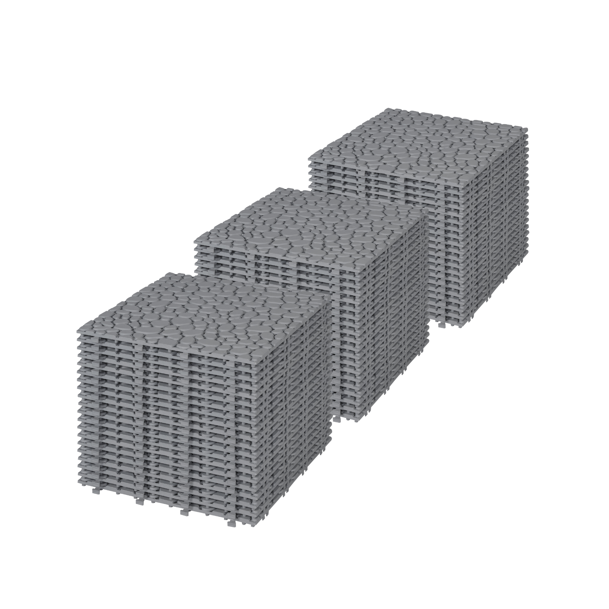 12 x 12 Inch Gray Interlocking Deck Tiles Plastic Waterproof Outdoor All Weather Anti-slip Bathroom Shower Balcony Porch Strong Weight Capacity Upto 440 LBS, Pebble Stone Pattern Pack of 60