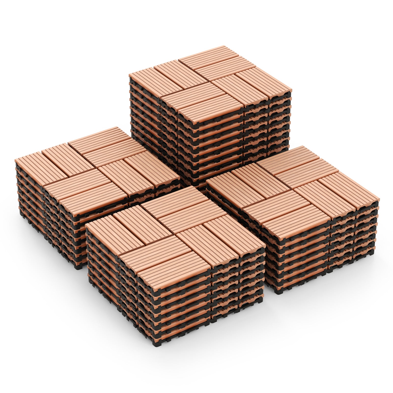 18 Pieces 12 x 12 Inch All Weather Interlocking Deck Tiles-Brown