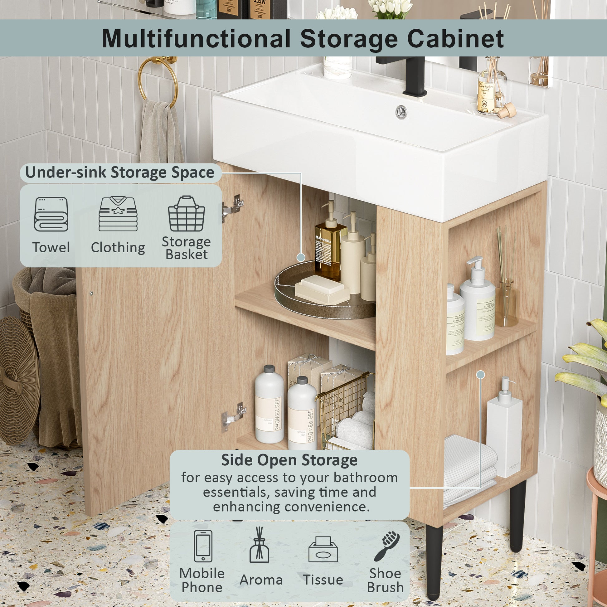 21.6" Wood Bathroom vanity, Combo Cabinet, Bathroom Storage Cabinet, Single Ceramic Sink, Right side storage