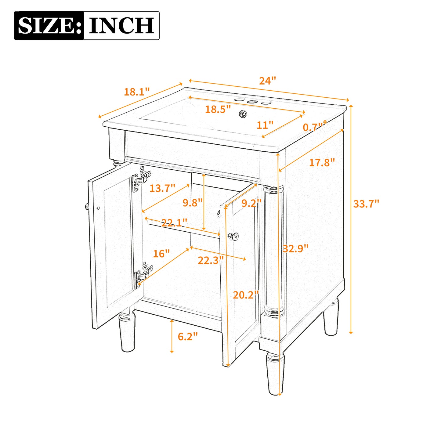 24'' Bathroom Vanity with Top Sink, 2-Tier Modern Bathroom Storage Cabinet, Single Sink Bathroom Vanity, Large Storage Shelves