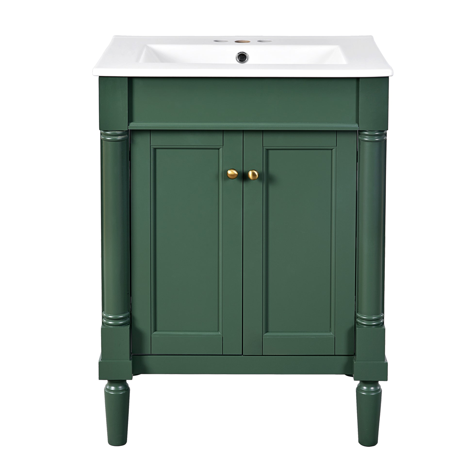 24'' Bathroom Vanity with Top Sink, 2-Tier Modern Bathroom Storage Cabinet, Single Sink Bathroom Vanity, Large Storage Shelves