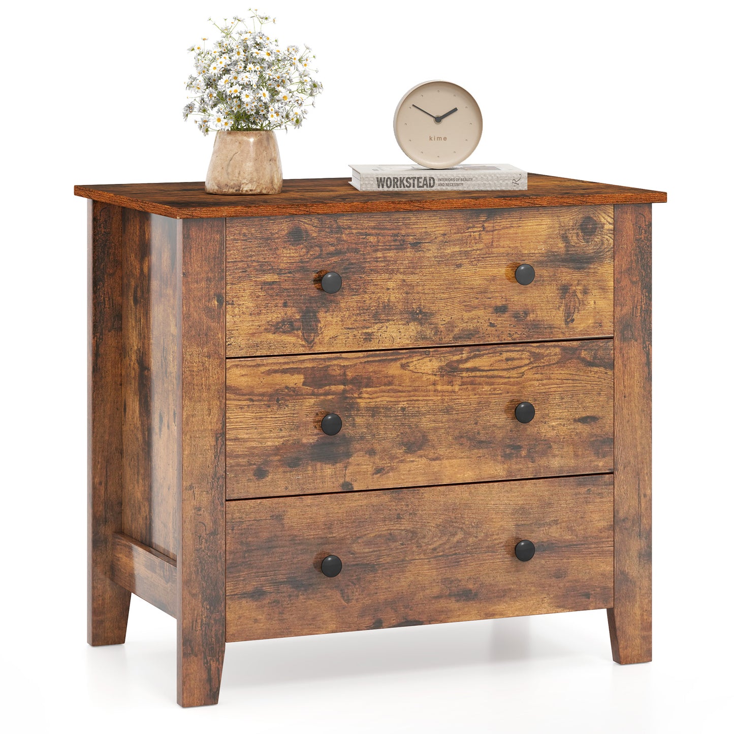 3 Drawer Dresser Chest of Drawers Bedside Table-Rustic Brown