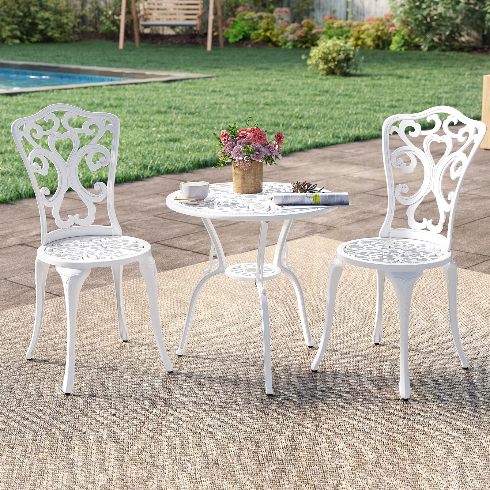 3 Piece All Weather Cast Aluminum Bistro Chairs and Table with Umbrella Holes-White