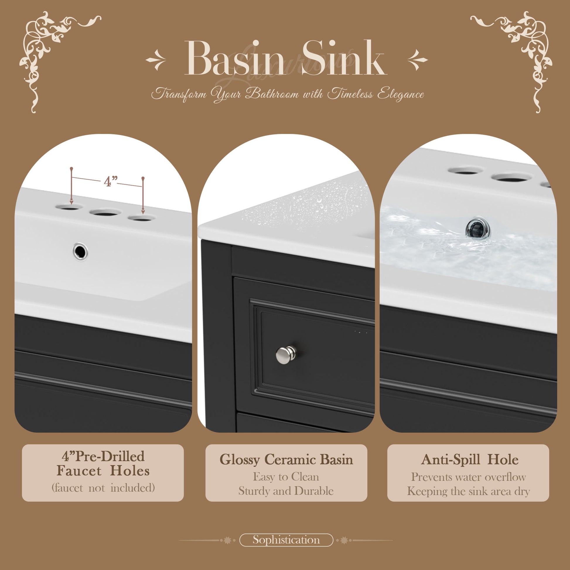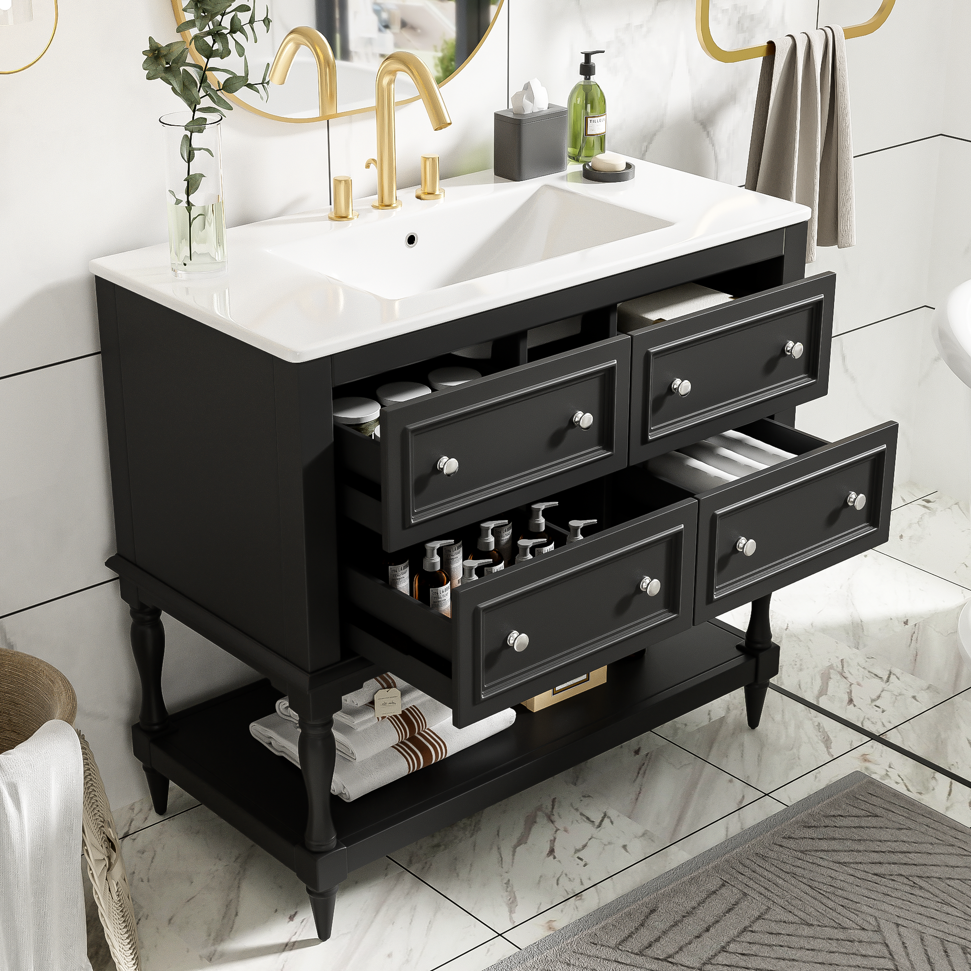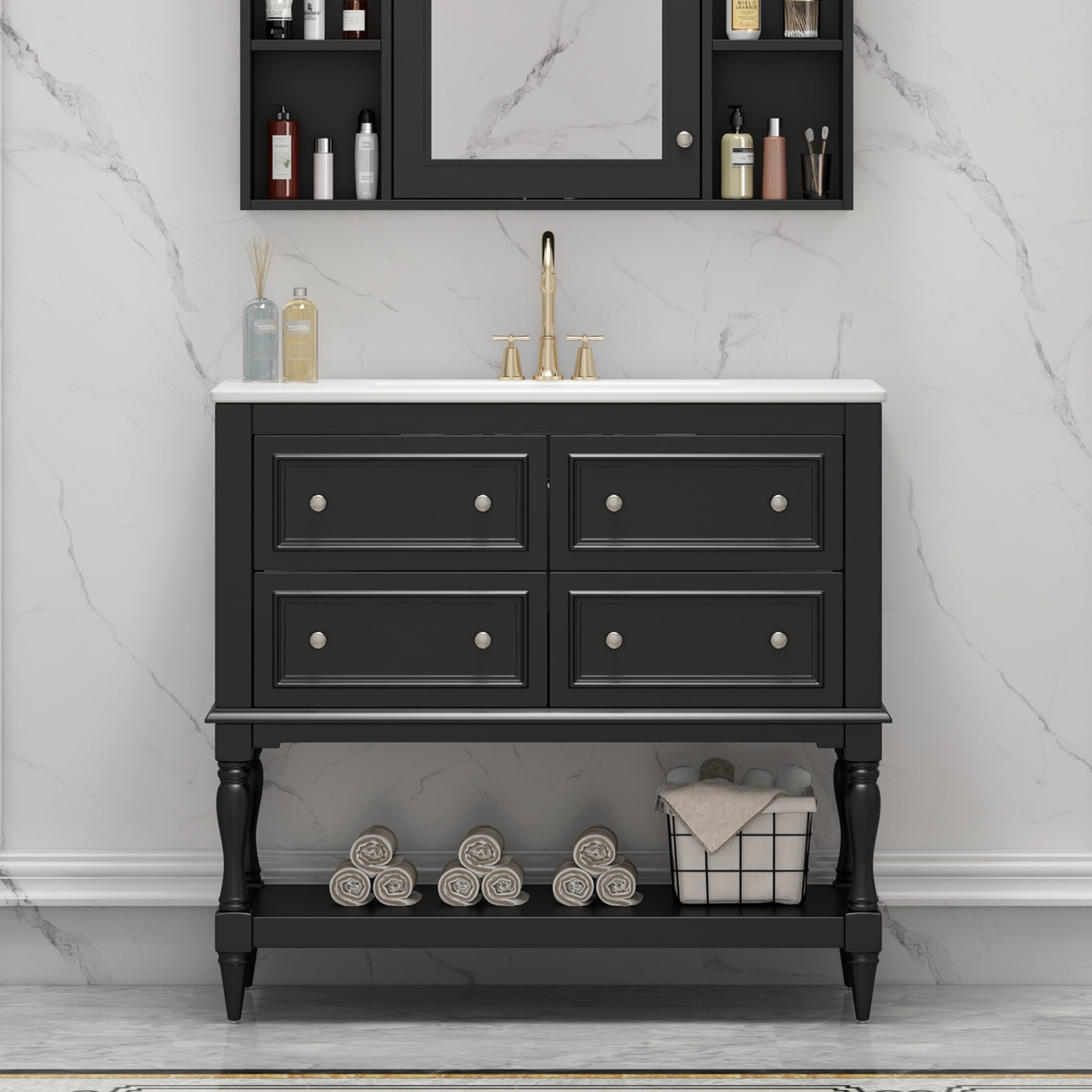 36" Bathroom Vanity Cabinet with Sink Combo Set, Undermount Ceramic Sink, Free Standing Vanity Set with 4 Drawers, Solid Wood Frame Bathroom Cabinet, Black