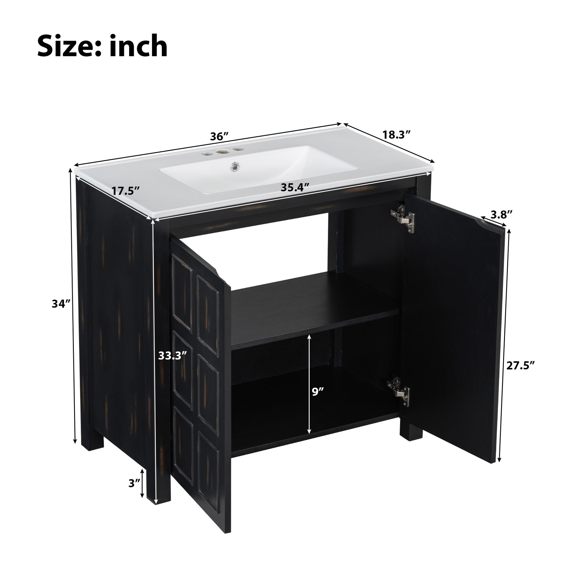 36 " Bathroom Vanity Organizer with Ceramic Sink, Set Bathroom Storage Cabinet, Vintage Espresso