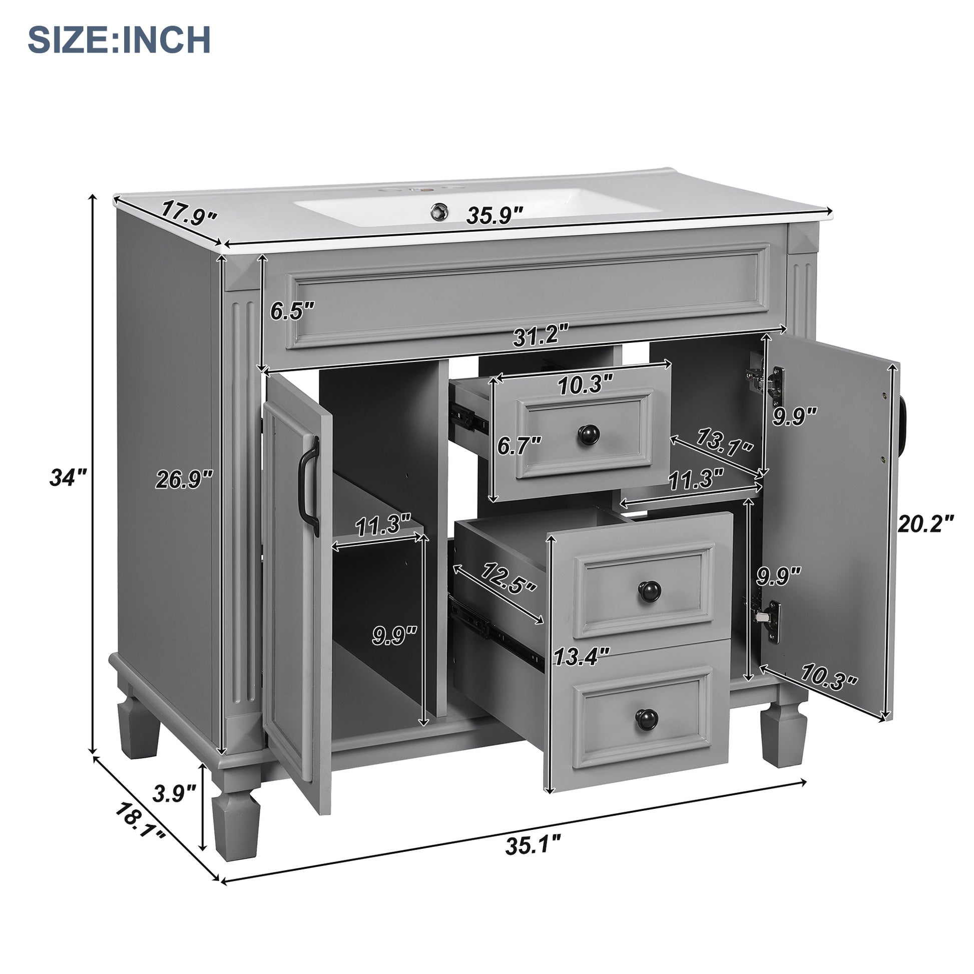 36'' Bathroom Vanity with Top Sink, Modern Bathroom Storage Cabinet with 2 Soft Closing Doors and 2 Drawers, Single Sink Bathroom Vanity