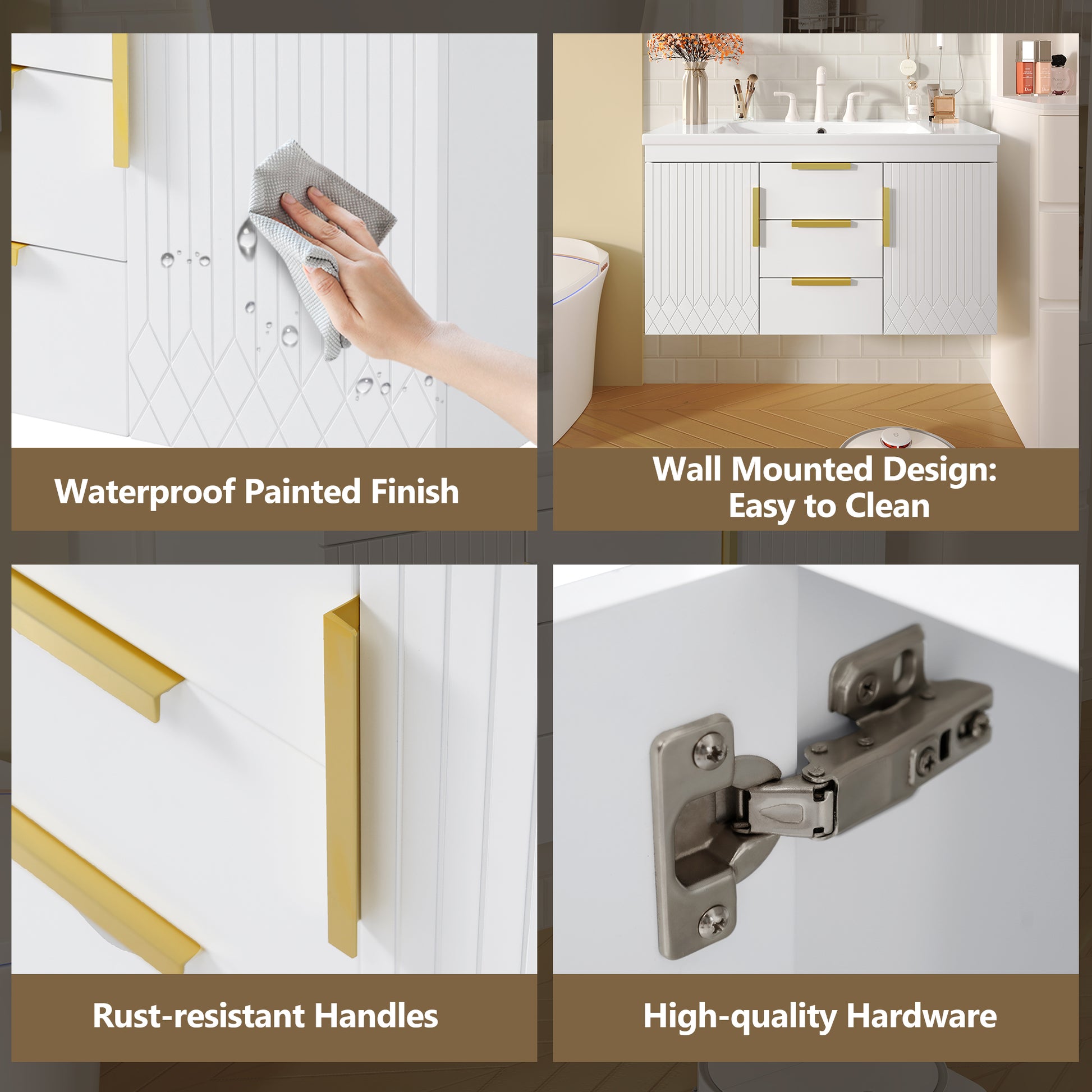 36'' Wall Mounted Bathroom Vanity, Floating Bathroom Storage Cabinet with 2 Drawers, Solid Wood Bathroom Cabinet