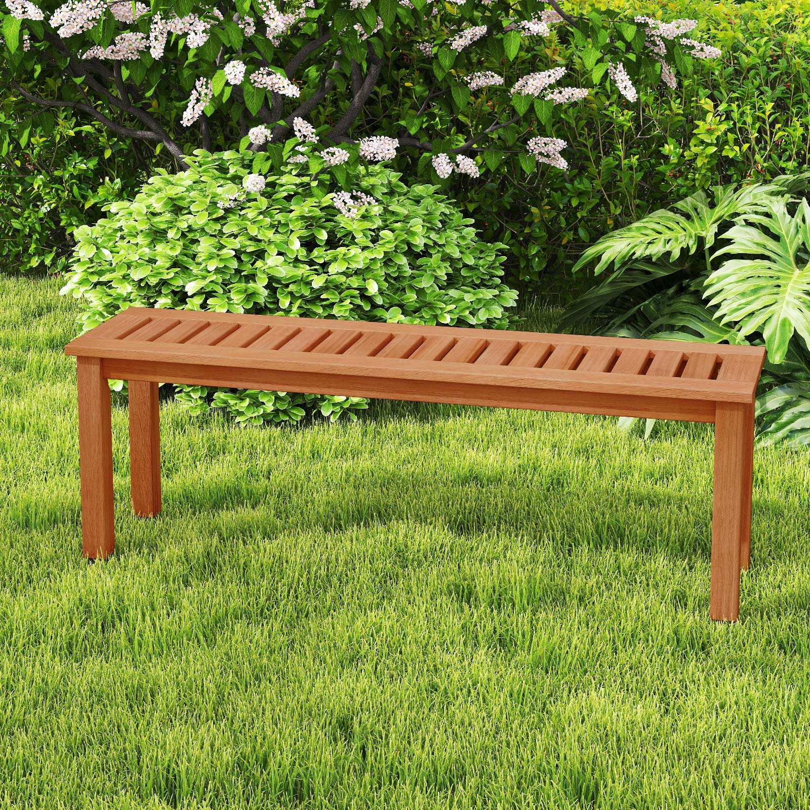 Made of highquality solid wood for high stabilityPainted with teak oil for longlasting useFirm screw connection for strengthened structure47'' long seat with 705 lbs max load accommodates up to 2Natural appearance brings much eleganceSuitable for garden poolside balcony entryway and so onSimple to assemble saving time and effortPlease avoid rain exposure for prolonged service life