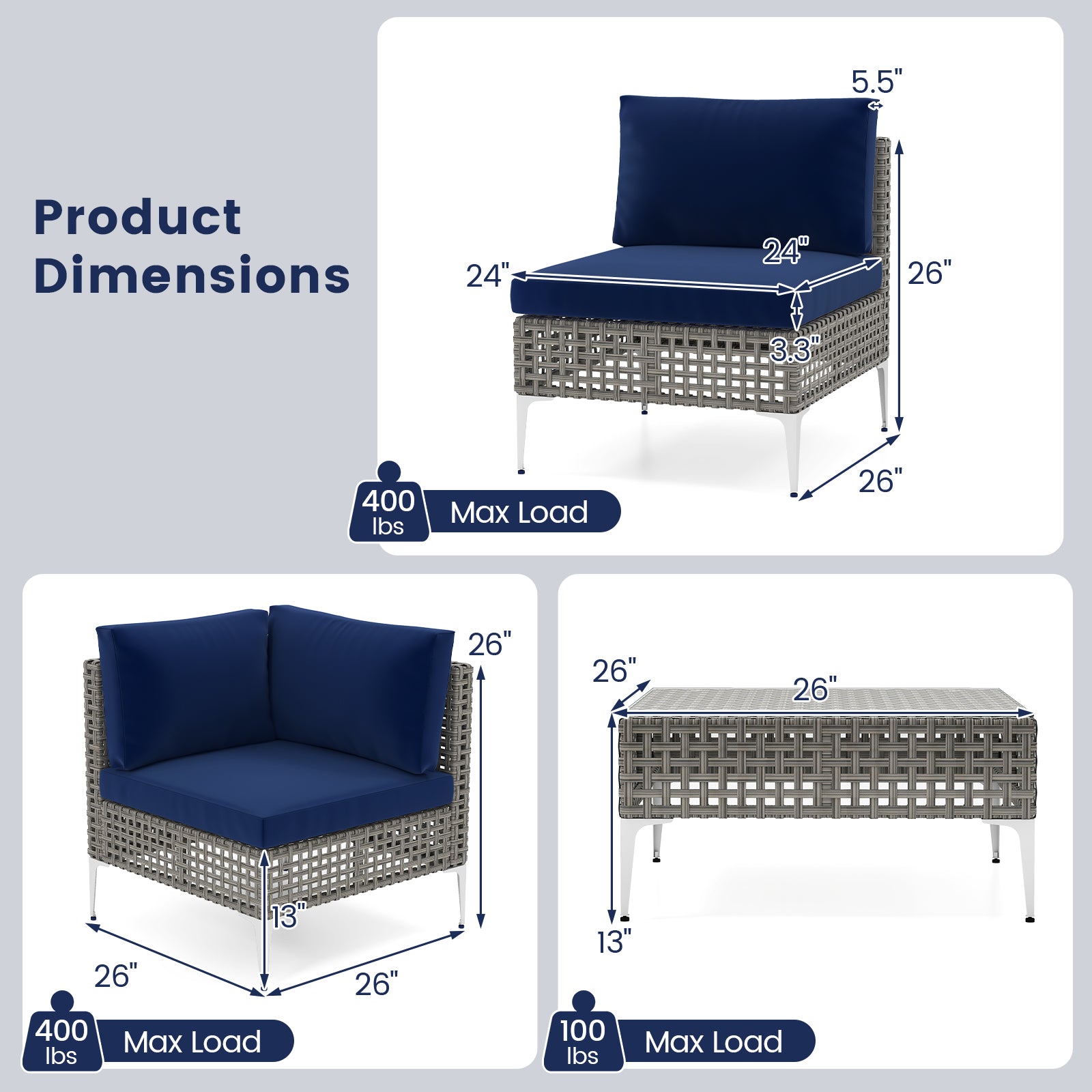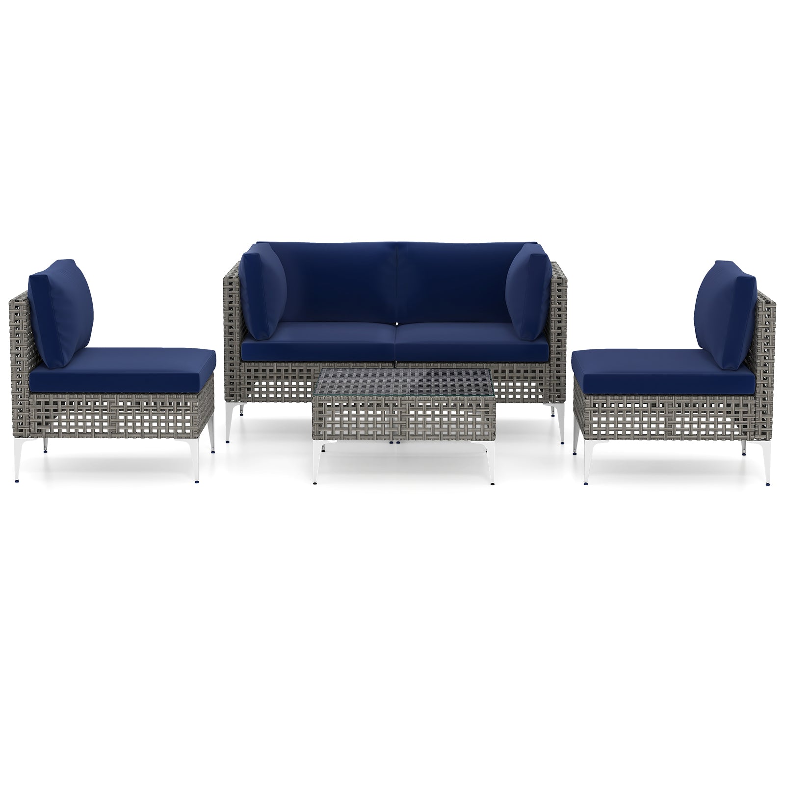 5 Piece Outdoor Furniture Set Patio Rattan Chairs with Tempered Glass Coffee Table-Navy