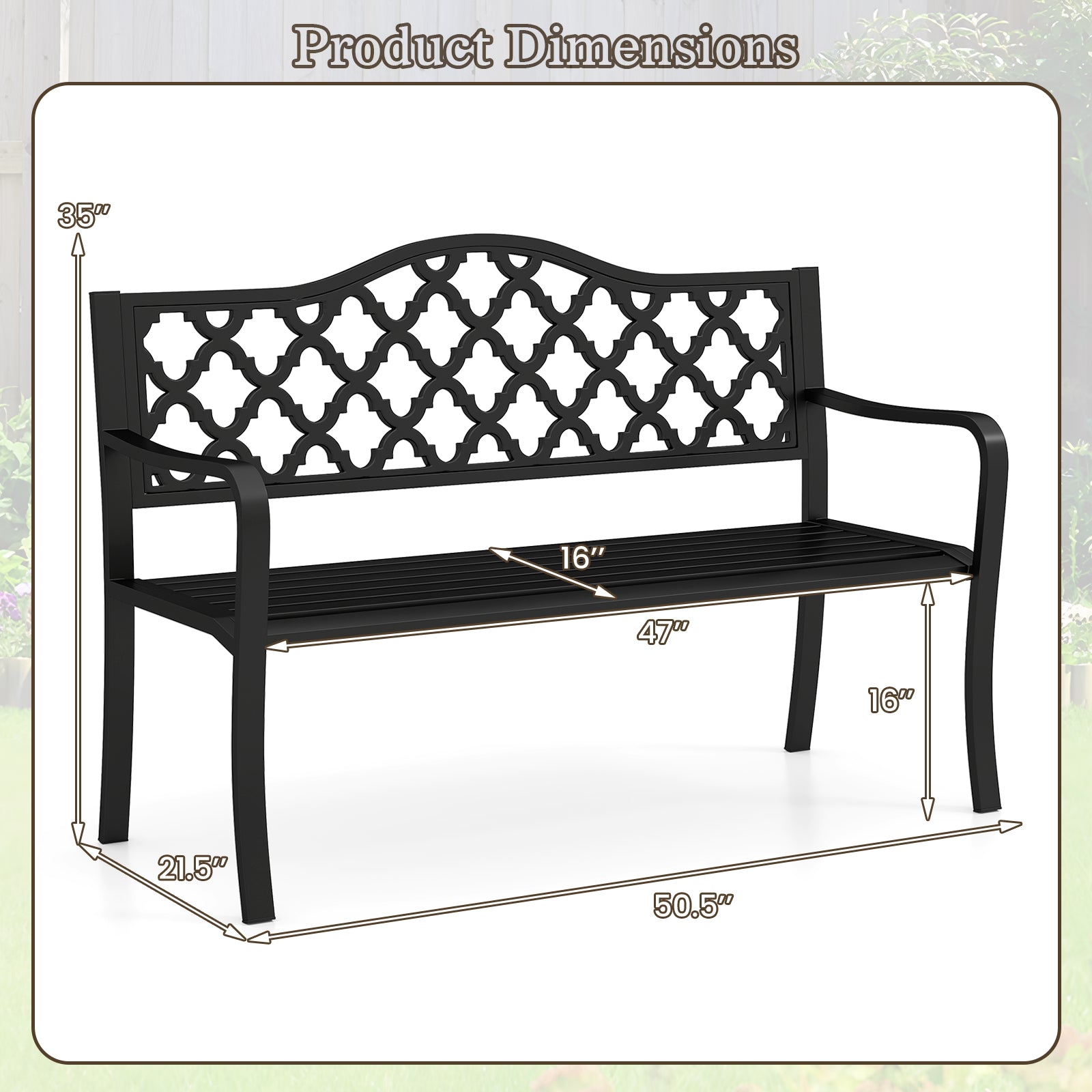 50.5 Inch Patio Bench with Curved Armrests for 2-3 People-Black