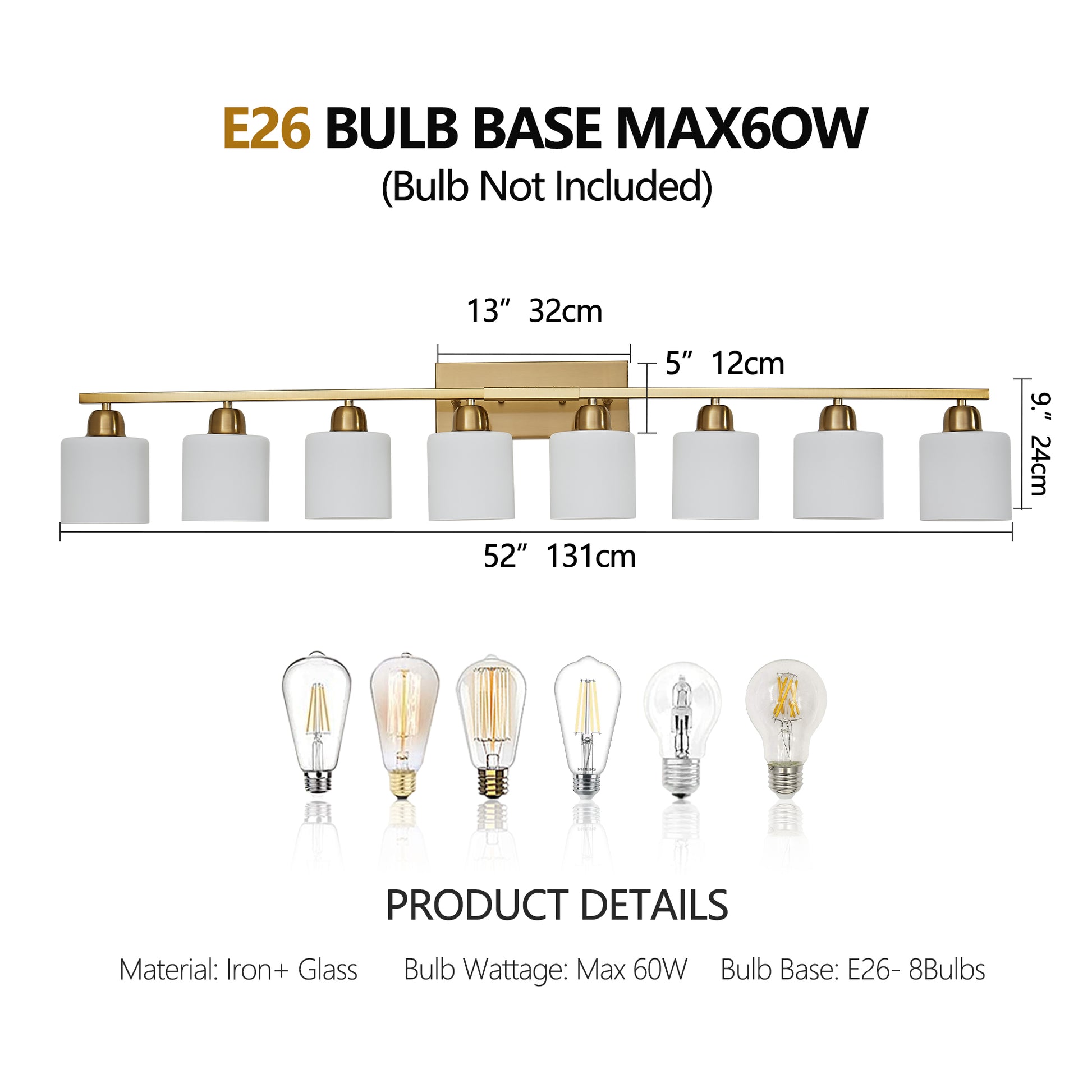 Bulb type & quantity: 8*E26 bulbs (The product without bulbs!)