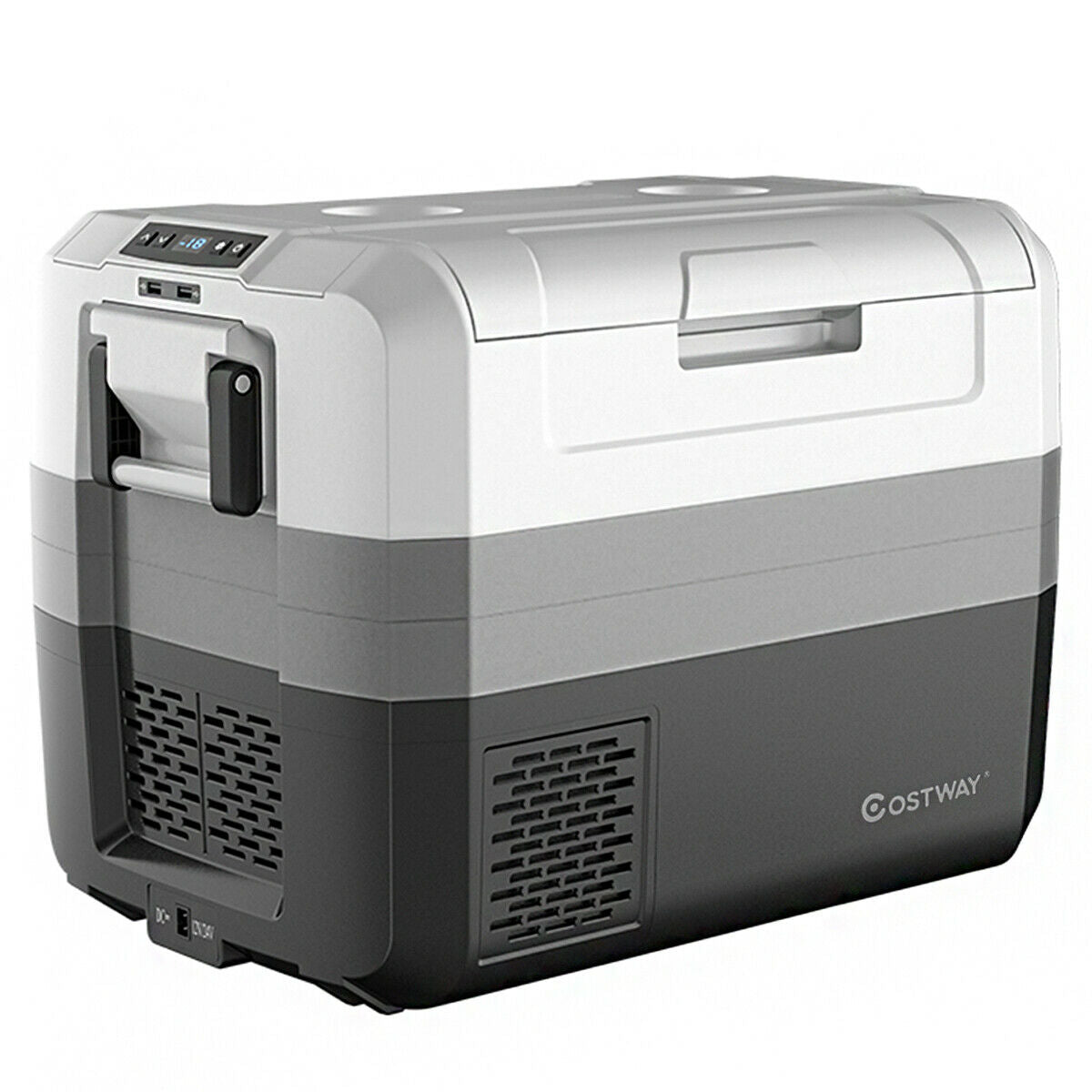 Unique two-way door design allows you to open the refrigerator in a narrow space With a capacity of 58 quart for storing 84 bottles of 330ml beverage or 17 bottles of 750ml red wine With a capacity of 70 quart for storing 99 bottles of 330ml beverage or 20 bottles of 750ml red wine 2 top grooves for putting teacups side storage box for putting bottle opener knife and fork It has max (fast cooling) mode and eco (energy saving) mode When the door is opened at an angle greater than 20 ° the led light comes on With beautifully packaged accessories and a versatile wine opener can be used as a gift You can freely switch between fahrenheit and celsius Drain hole at the bottom for easy cleaning of the refrigerator It has 2 usb ports for you to charge Includes a reusable ice pack to keep cool Sturdy stainless steel handles for convenient transportation 2 separate areas for refrigeration and freezing 3-level battery protection to protect your vehicle battery This product is not for sale in california