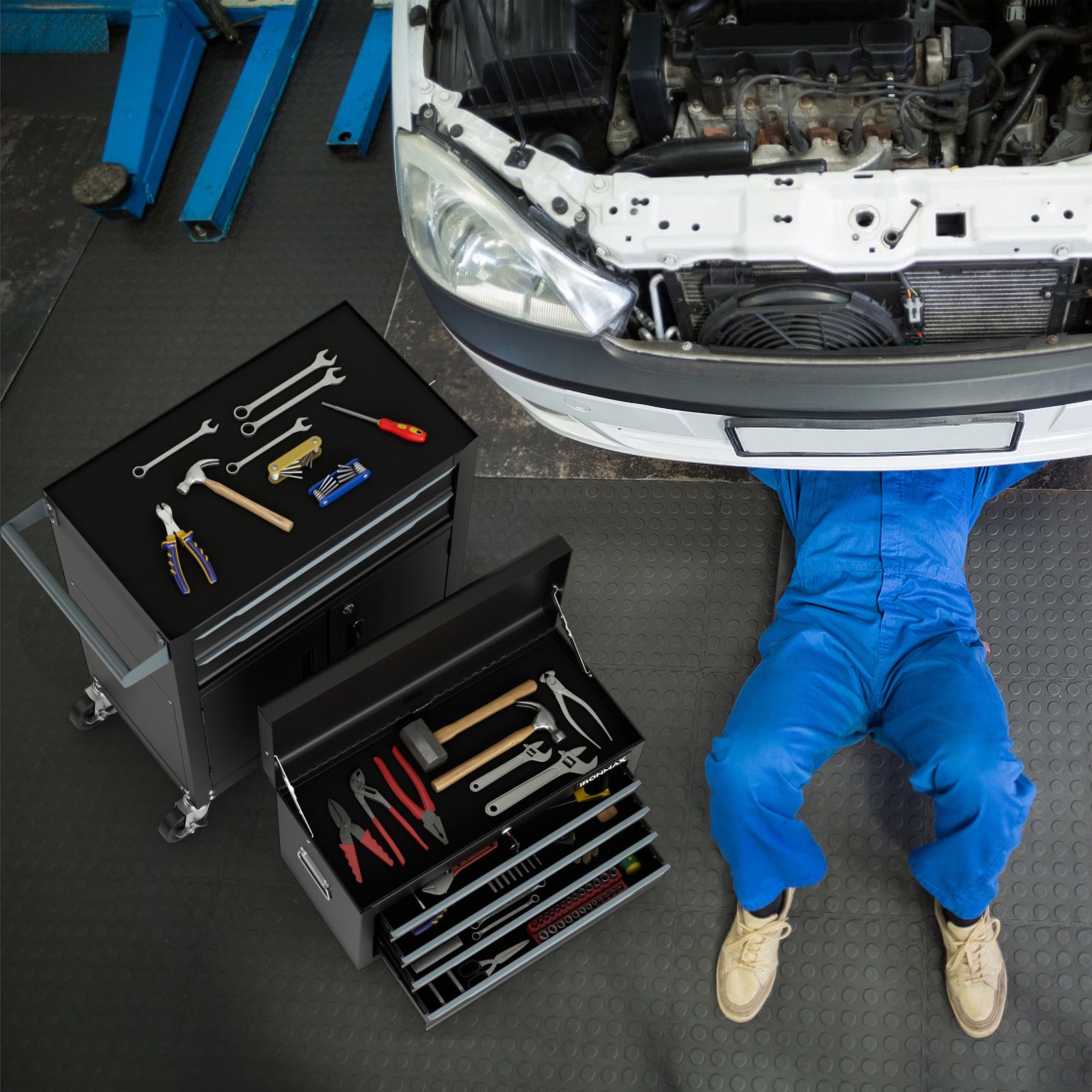 Wider size for more storage space than others4'' wheels are much larger than othersEasy to control the direction with the easy-to-pull handleSmooth drawer slide for simple open and closeSlide door design of the middle cabinetSafety locking system for higher securityAnti-slip liner protects the tools insideDetachable top chest meets more of your demandsSuper sturdy with heavy-duty metal frameInstallation guide