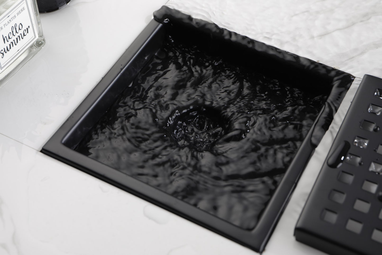 The square drain cover with grid design to enhance water flowing.