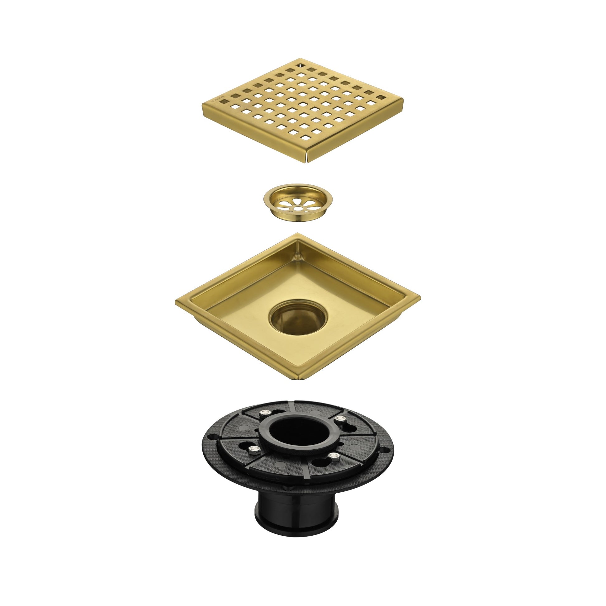 6 Inch Square Shower Floor Drain Square Shower Floor Drain with Flange,Pattern Grate Removable,Food-Grade SUS 304 Stainless Steel