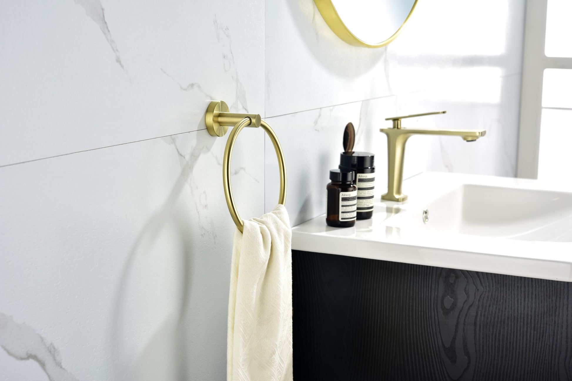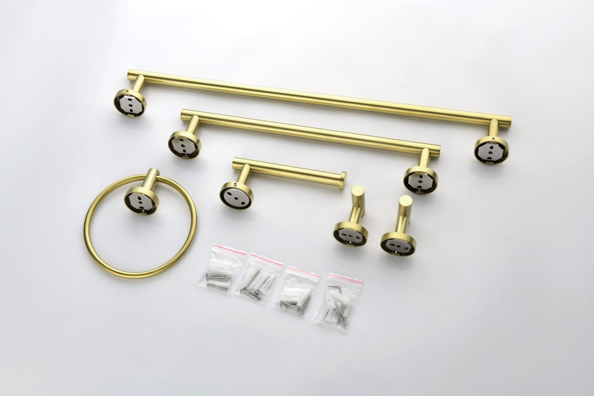 6-Pieces Brushed Gold Bathroom Hardware Set SUS304 Stainless Steel Round Wall Mounted Includes Hand Towel Bar,Toilet Paper Holder,Robe Towel Hooks,Bathroom Accessories Kit