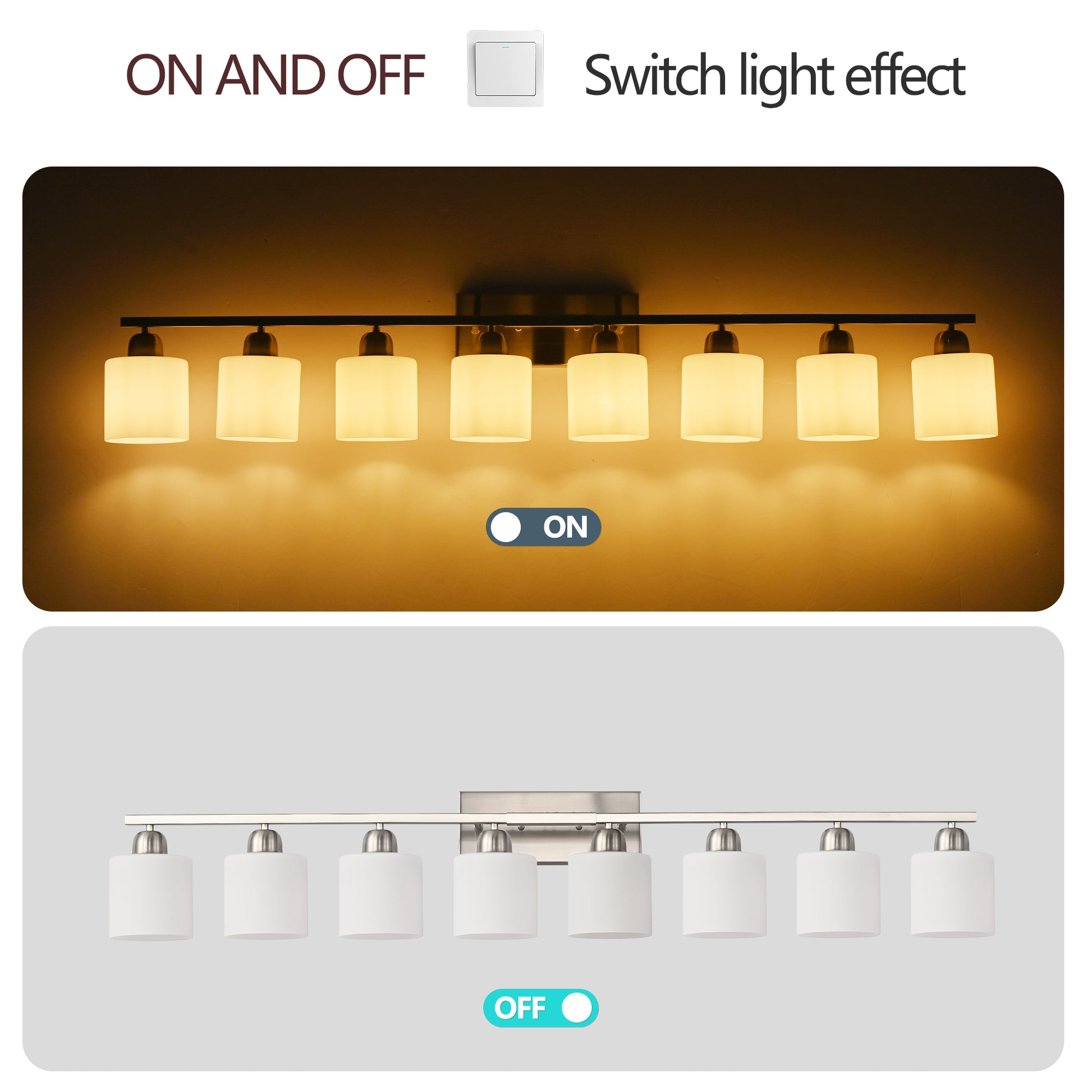 8-Light Bathroom Light Fixtures, 52inch Nickel Vanity Light with Milky White Glass Shade, Modern Bat