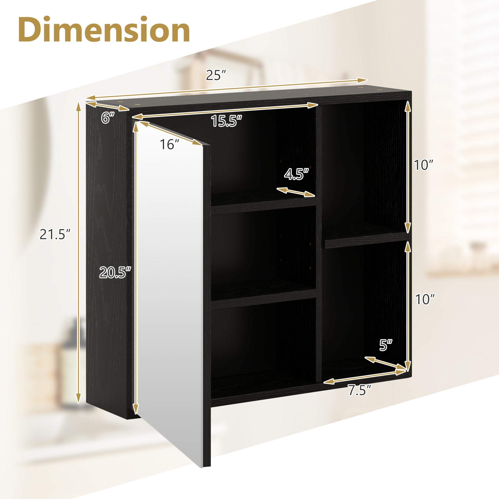 Combines a storage cabinet and high-definition mirror in oneMaximizes the wall space to create extra storage capacityPractical storage solution with open and enclosed storageBuilt in 2 adjustable shelves to meets diverse storage needsFeatures 2 open storage compartments for easy accessSimple design fits various decoration stylesSuitable for your bathroom laundry room entryway hallway etc.Crafted with soft close hinges for durabilityComes with all necessary mounting hardwareEasy assembly with detailed instructions
