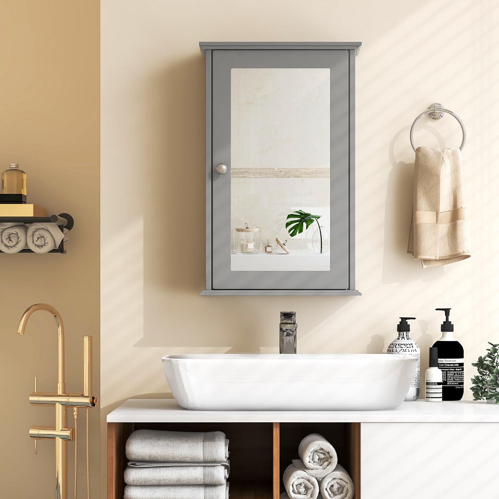 Bathroom Wall Cabinet with Single Mirror Door-Gray