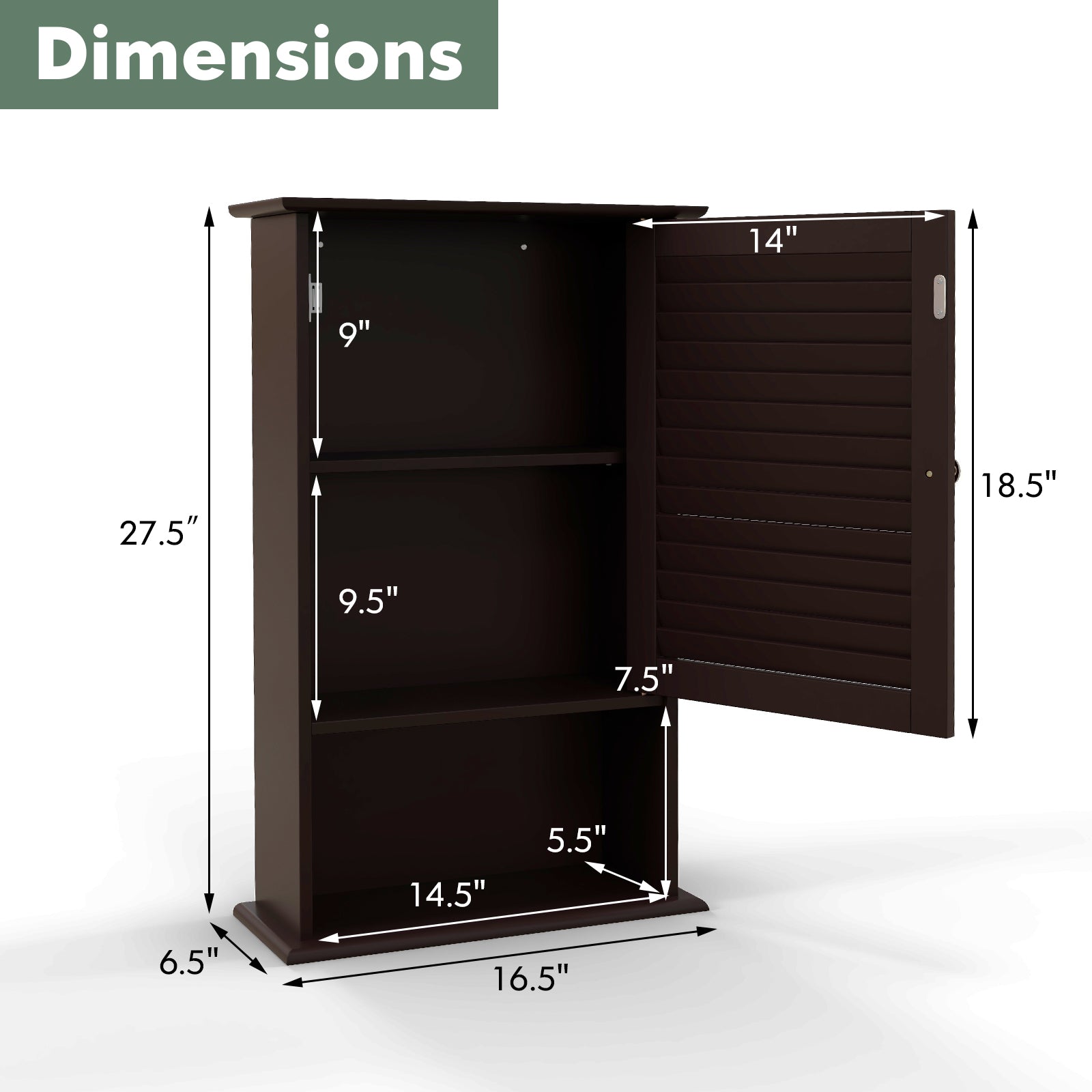 Bathroom Wall Mount Storage Cabinet Single Door with Height Adjustable Shelf-Rustic Brown