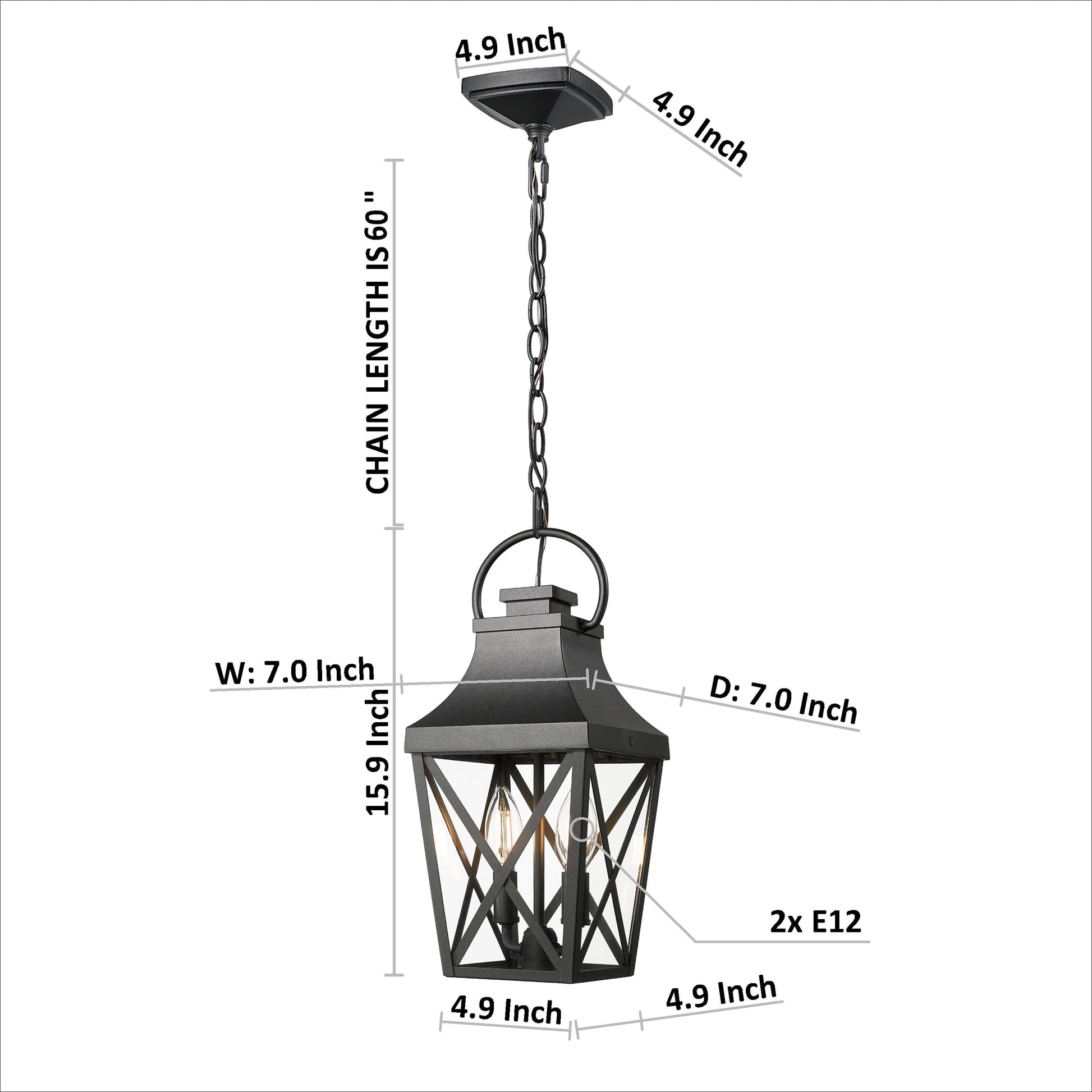 Black Outdoor Pendant Light 2-Light Outside Pendant Hanging Light Fixture Ceiling Mount with Clear Glass Industrial Hanging Cage Chandelier for Porch,Entryway,Doorway,Farmhouse (1 pack)