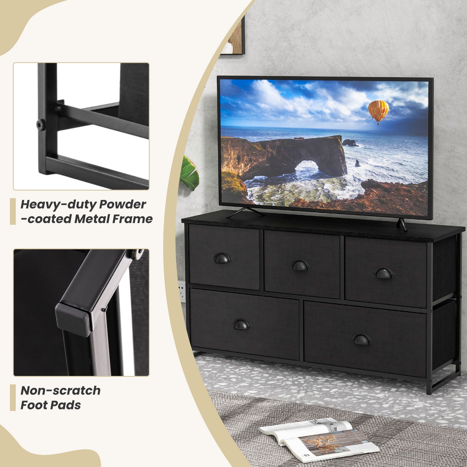 Dresser Storage Tower with 5 Foldable Cloth Storage Cubes-Black