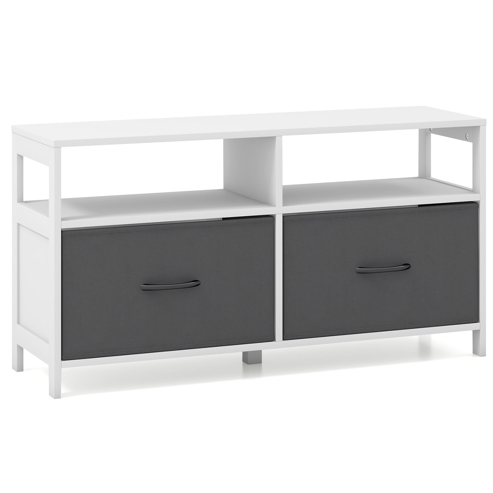 Fabric Chest of Drawers with 2 Drawers and 2 Open Shelves-White