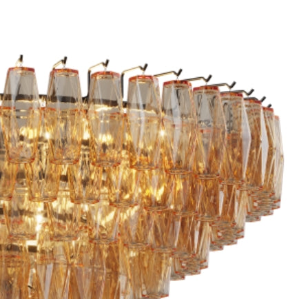 [UNIQUE SMOKE GLASS DESIGN]The modern chandelier lampshade is made of tiered glass, 172pcs smoke blown glass tubes are suspended on the brass frame circle, combining with the room decorated to create an atmosphere of elegance and luxury. The beautiful glass lampshade refract different colors of light, creating a warm and soft lighting atmosphere.