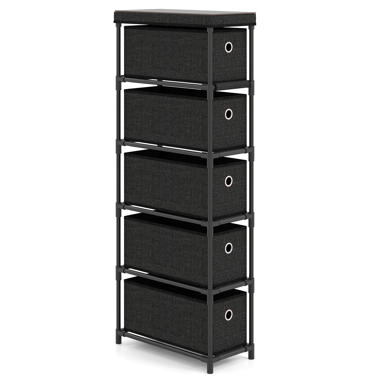 Narrow Dresser with 5 Drawers Slim Storage Tower with Metal Frame-Black