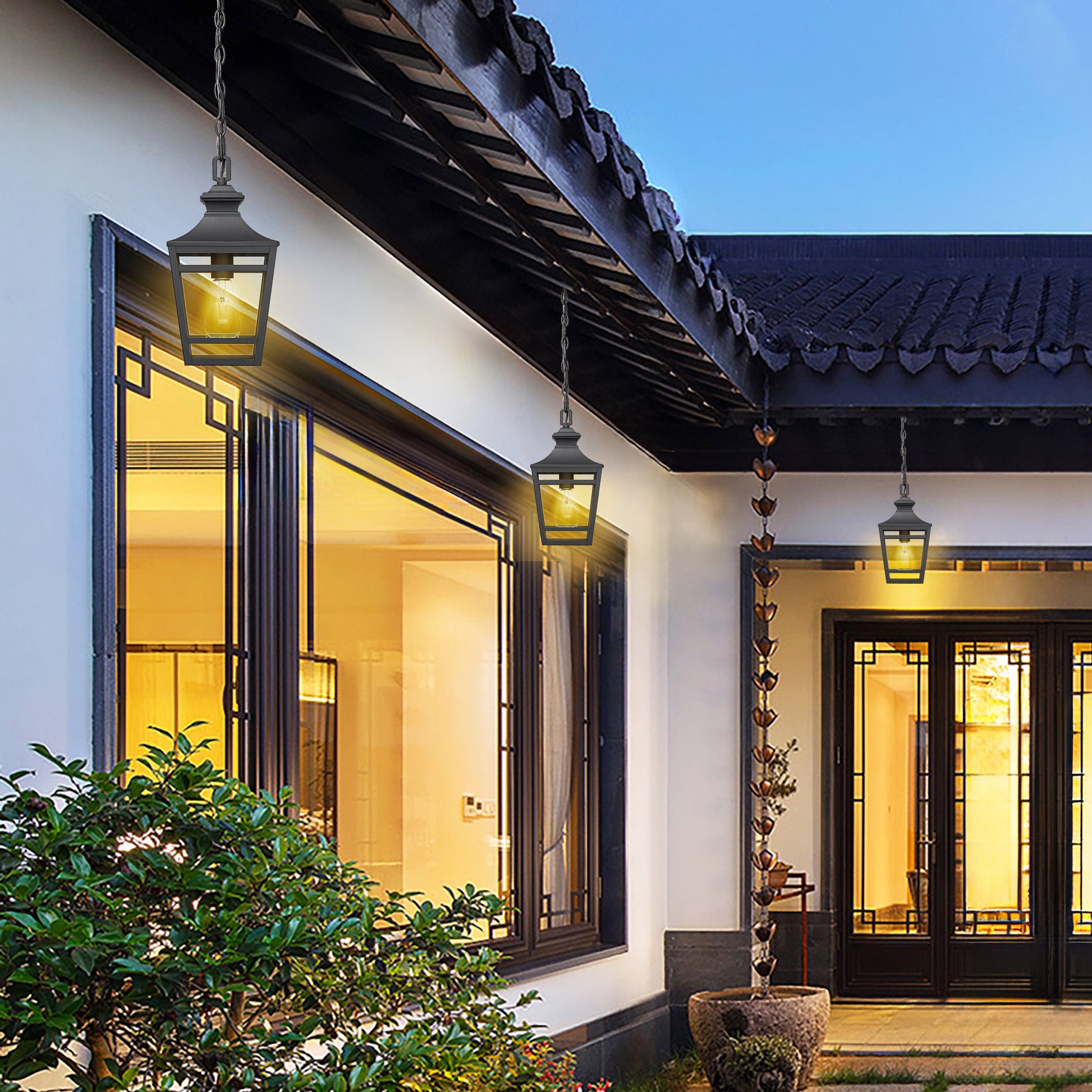 Adjustable Length & Fits Sloped Ceilings-You are free to adjust the length of your outdoor chain lights. The maximum 60-inch chain allows you to customize the length of the outdoor lantern you need to suit different environments and personalized styles, and is compatible with sloped ceilings.