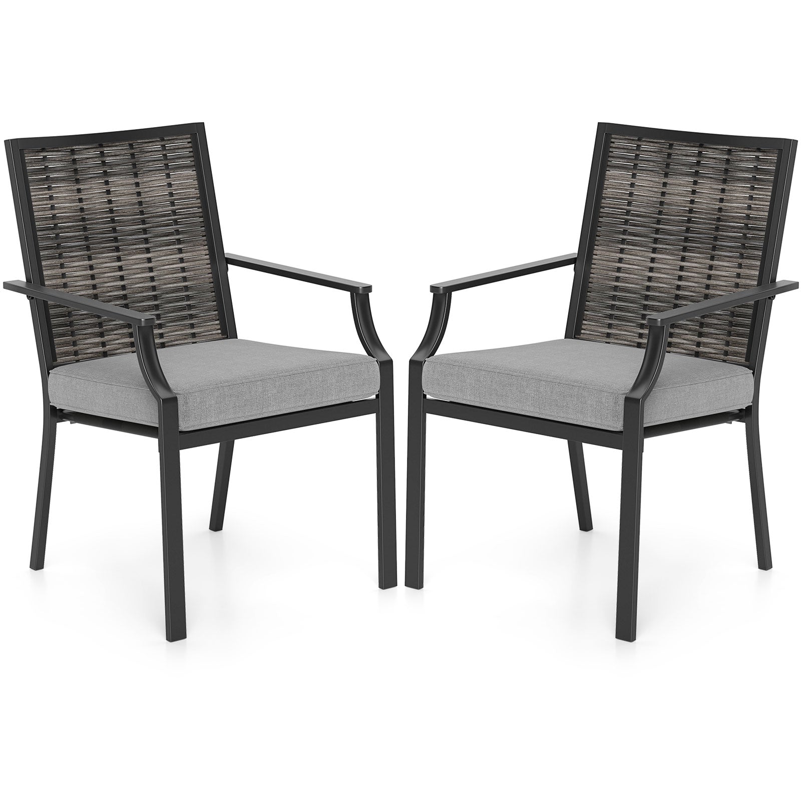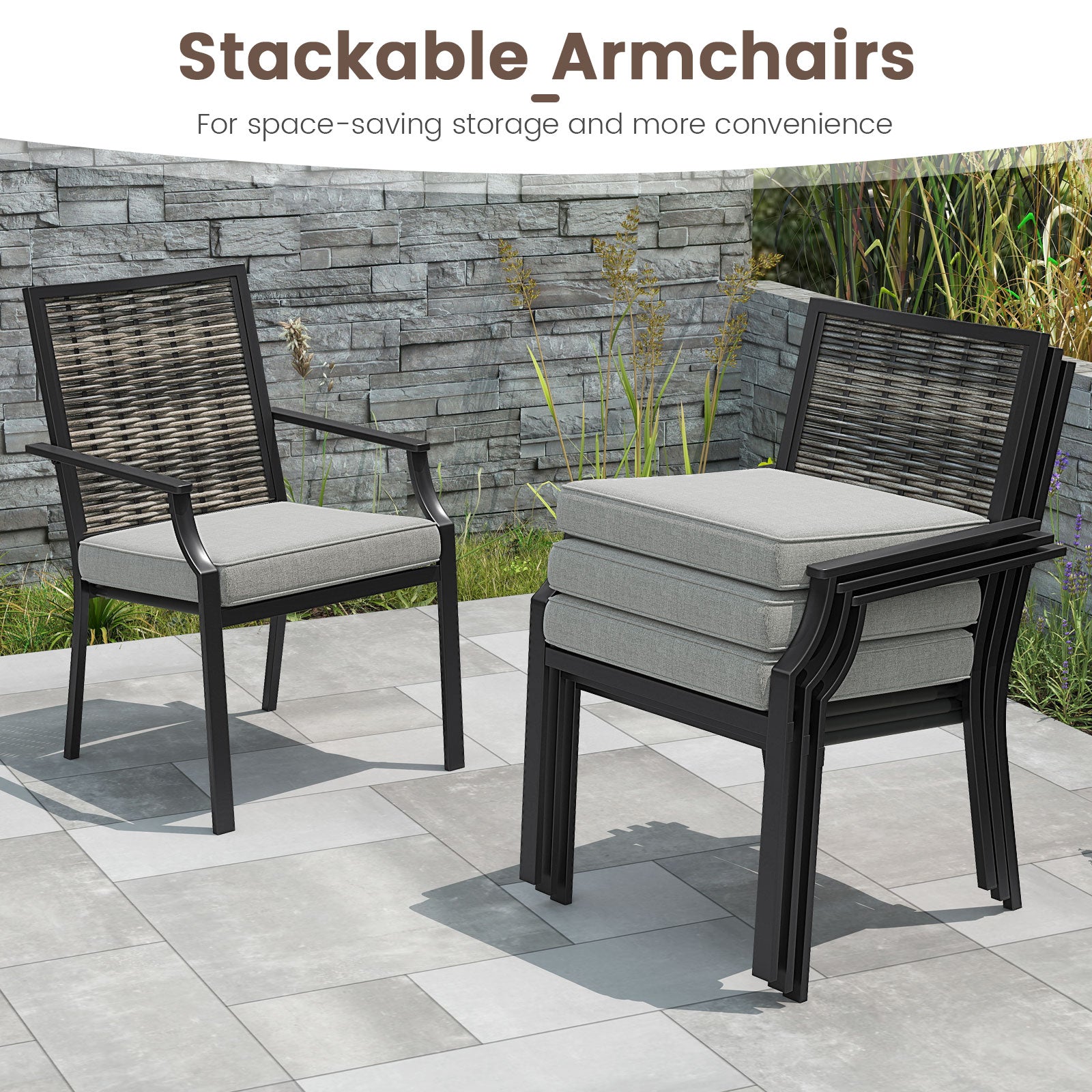 Patio Wicker Chairs Set of 2 Stackable Rattan Armchairs with Removable Cushions-Grey