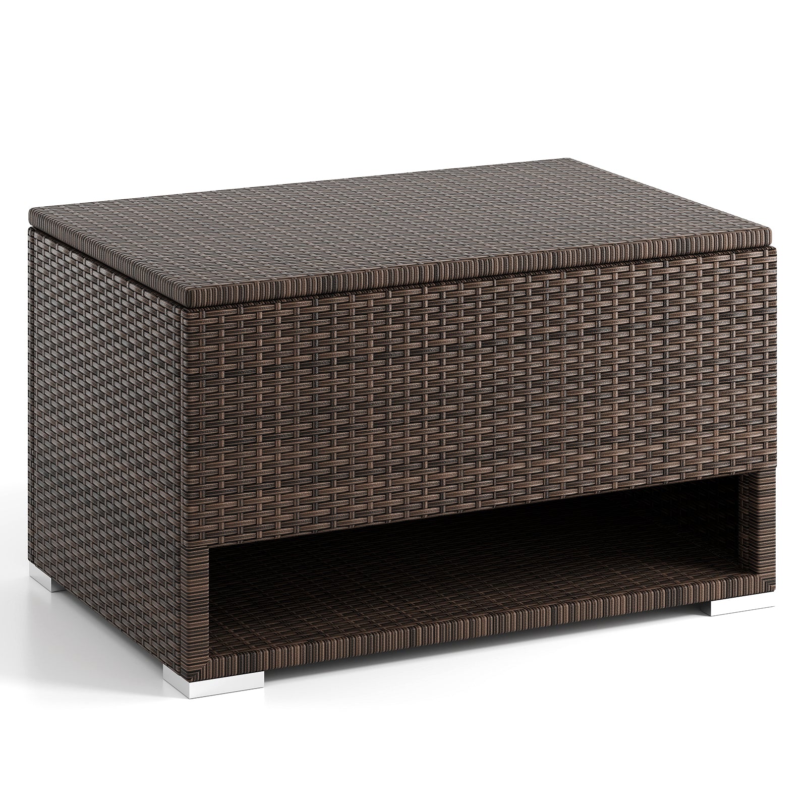 Anti-fading and sun-protective PE rattan for lasting useLarge inner space and shoe rack offer diverse storage areasEquipped with a liner for better protection of your belongingsHook and loop fasteners help keep the liner secure in placeEasy and safe to open with the soft close gas rod and flexible hingesHeavy-duty metal frame with reinforced structures for stabilityAnti-slip foot pads provide enhanced steadinessIdeal complement for your patio garden poolside etcPlease avoid rain exposure for prolonged service lifeAssembly required