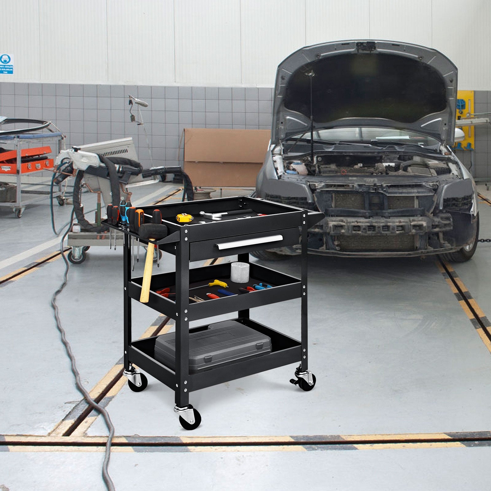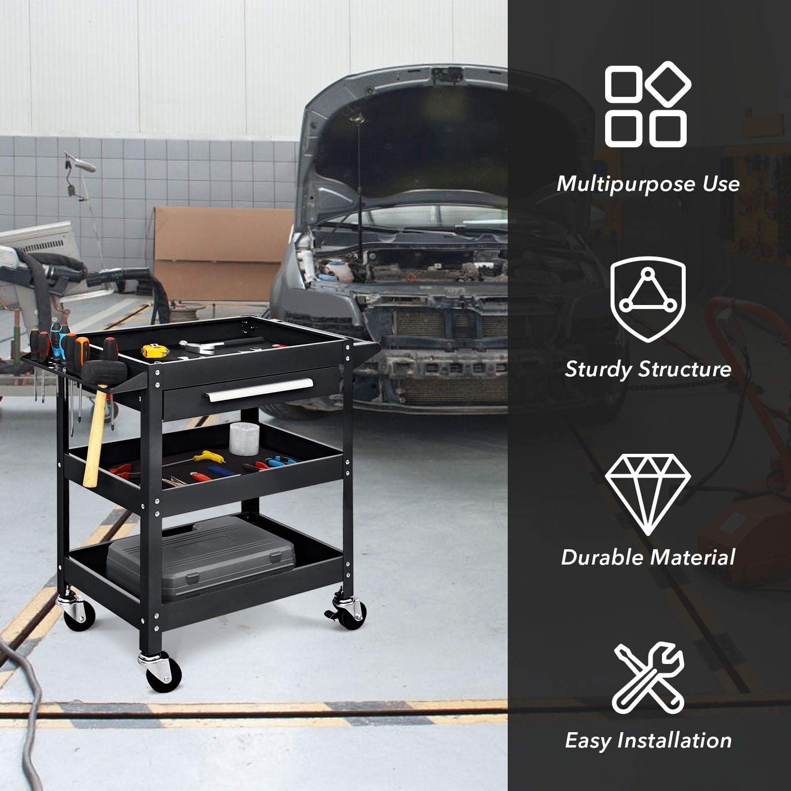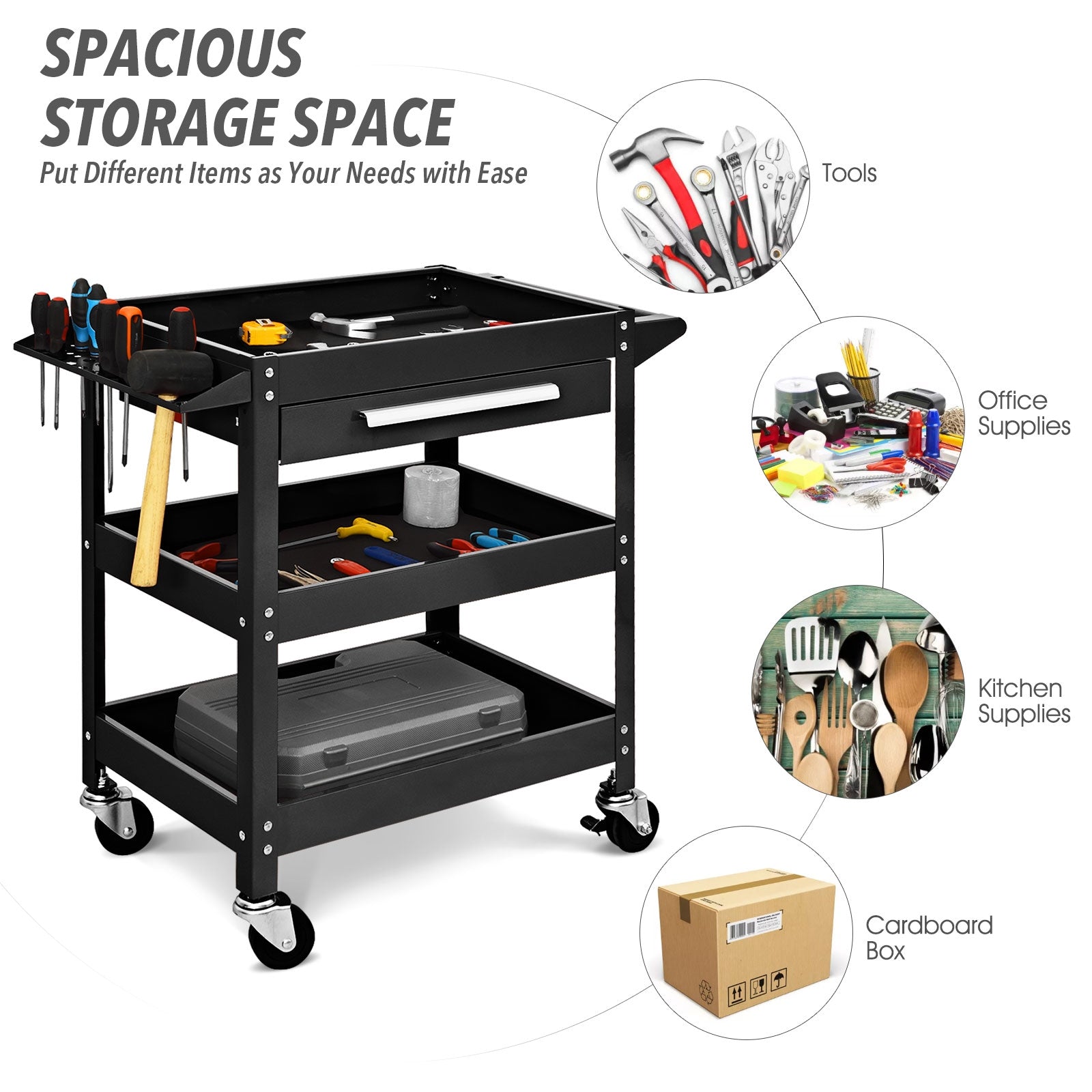 Rolling Tool Cart Mechanic Cabinet Storage ToolBox Organizer with Drawer-Black