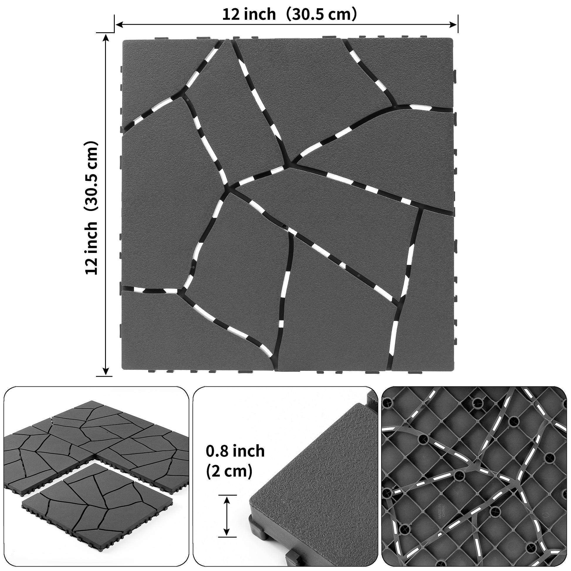 Stone Style 12" Patio Deck Tiles, DIY Module Interlocking Decking Tiles Floor Tile Outdoor and Indoor,Easy and Quick Installation Court Tiles for Porch Poolside Balcony Backyard 44pcs,dark gray