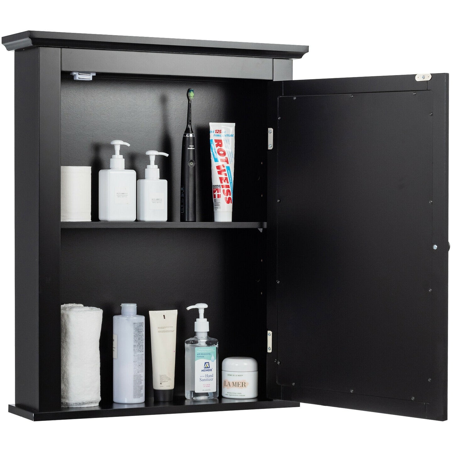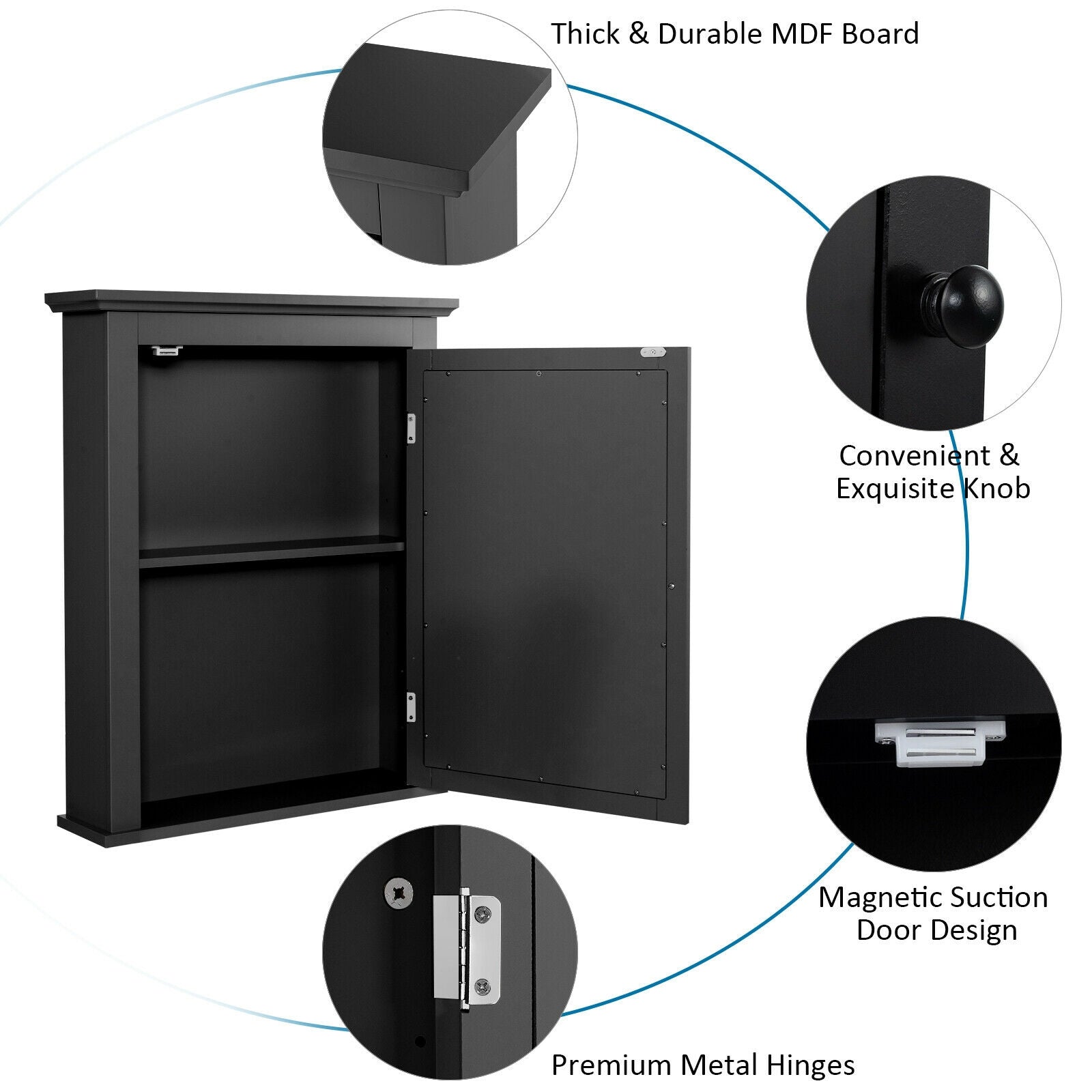 Wall Mounted Bathroom Mirror Cabinet with 5-level Height-adjustable Shelf-Black